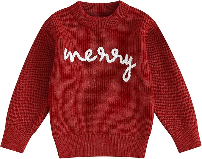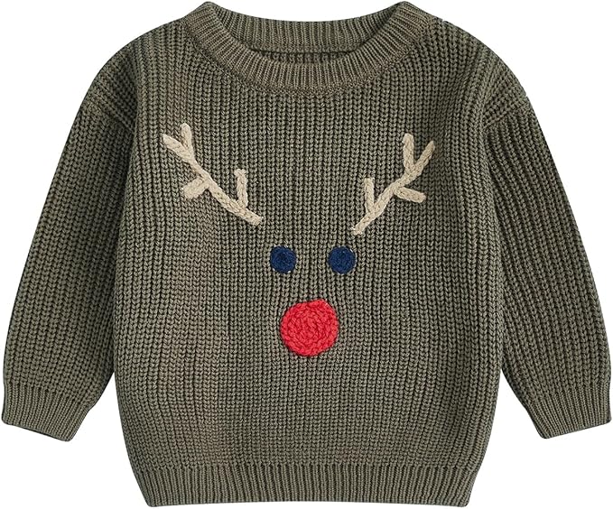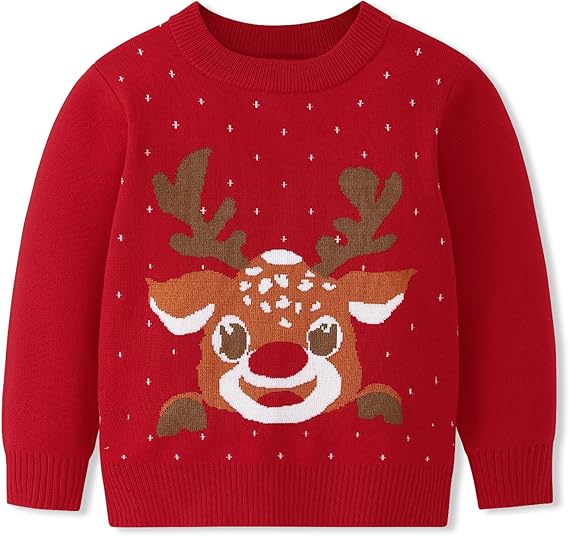 Toddler Boy Girl Sweatshirt Christmas Kids Knit Sweatshirt Pullover Sweater elk Tops Warm Deer Tees 1-6T Red