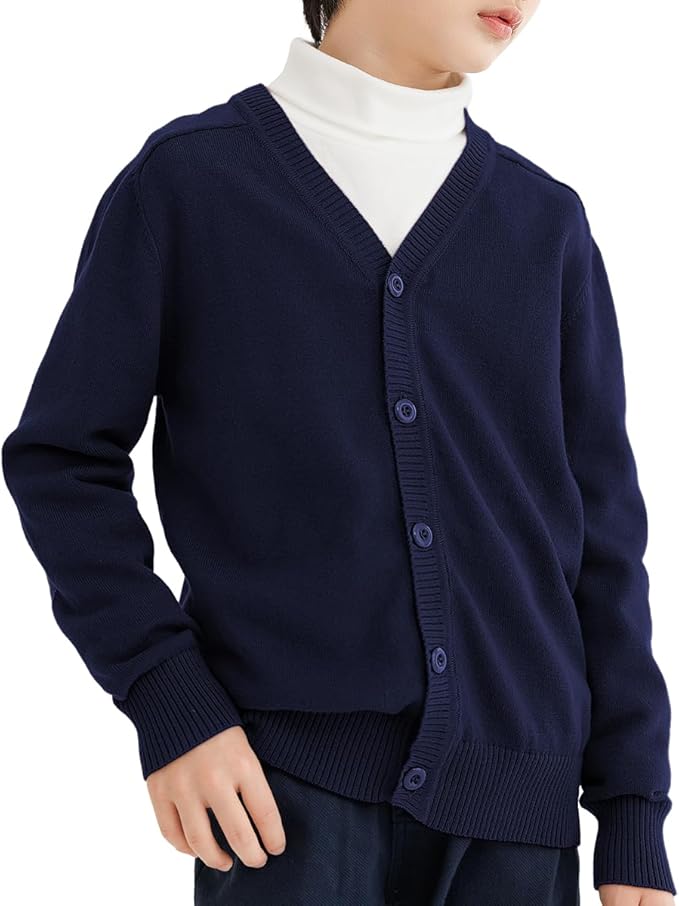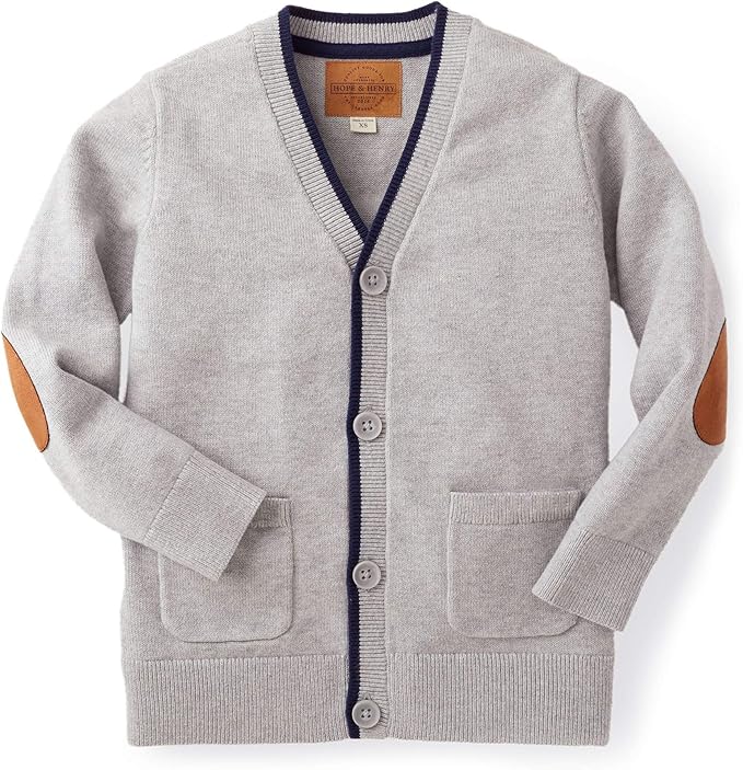 Boys' Button-up Cardigan with Elbow Patches V-Neck Cotton Knit Sweater Casual Outerwear