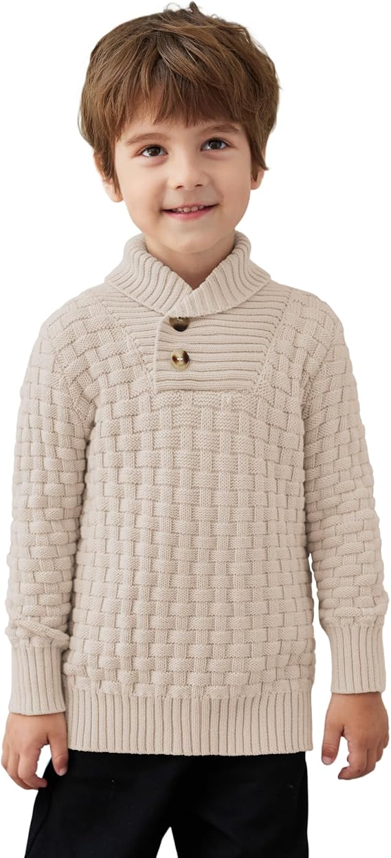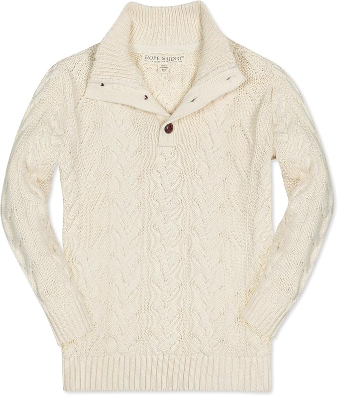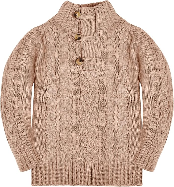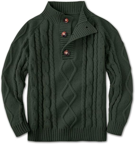 Boys Winter Cable Knit Button Down Sweaters Mock Neck Chunky Pullover 4-12 Years