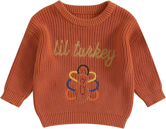 Thanksgiving Baby Girl Boy Outfit Newborn Toddler Little Turkey Oversized Knit Sweater Chunky Pullover Sweaters