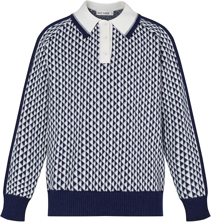 Boys' Lapel Long Sleeve Contrast Color Diamond Check Fashion Pullover Sweater (5-12Y)