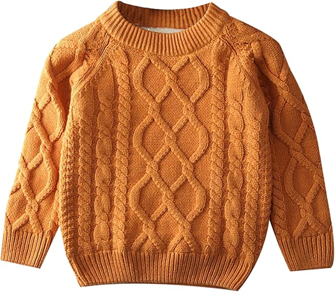 Toddler Baby Boy Girl Cable Knit Pullover Sweater Cotton Lined Warm Sweatshirt