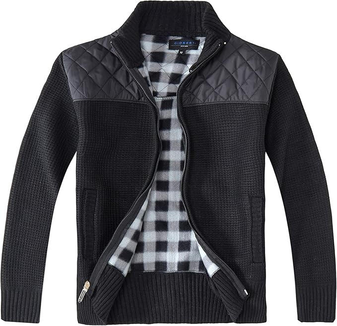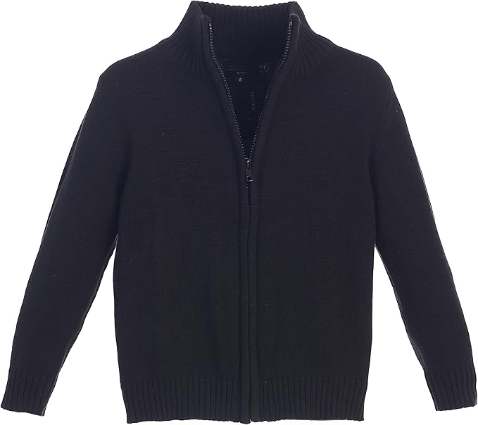 Boy's Knitted Full Zip Cardigan Sweater with Soft Brushed Flannel Lining