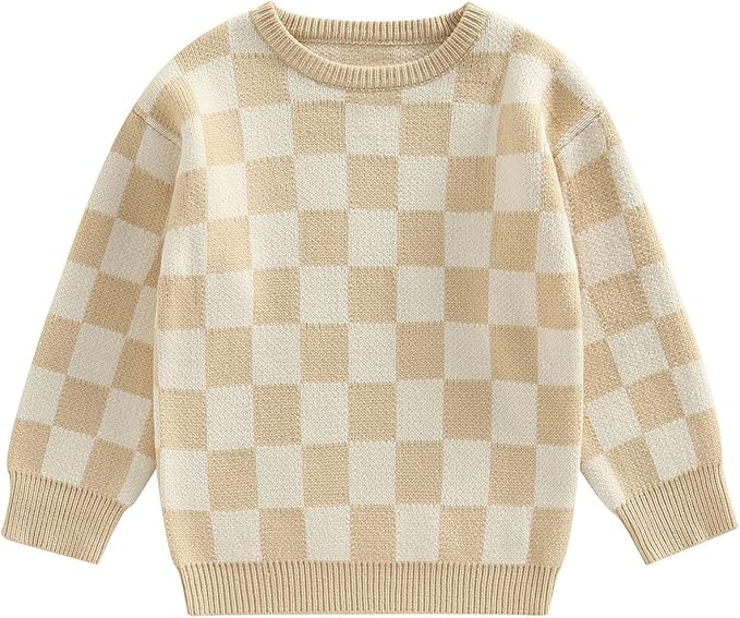 Toddler Baby Boy Girl Sweater Checkerboard Knit Crewneck Sweatshirt Soft Warm Fall Winter Clothes