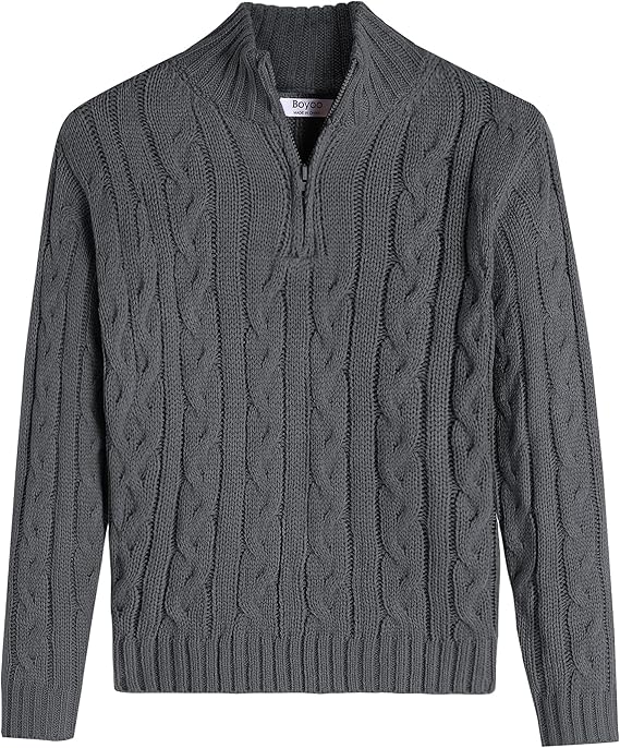 Boys Pullover Sweater - Classic Fit Mid-Weight Quarter Zip Pullover- Mock Neck Sweater for Boys (S-XL)