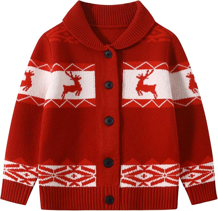 Kids Boys Girls Christmas Cardigans Ugly Xmas Sweaters Reindeer Snowflake Shawl Collar Knitted Cardigan Sweater