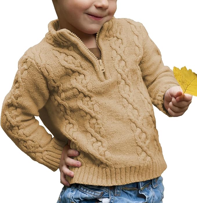 Toddler Boys' Girls' Cable Knit Pullover Sweater Quarter Zipper Long Sleeve Fall Winter Knitwear Outfit
