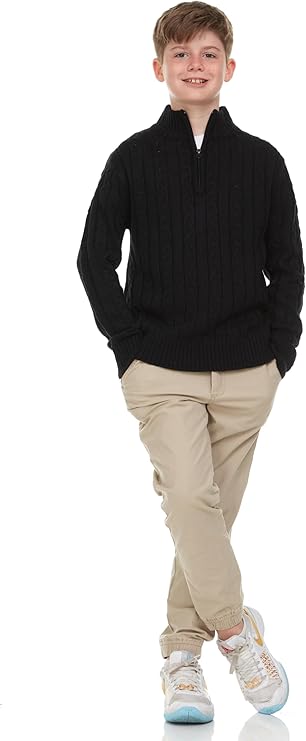 Boys Quarter Zip Cable Knit Sweater – Classic Warm Pullover for Kids. Black, Navy, Red