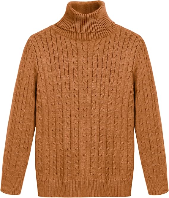 Boy's Ribbed Turtleneck Cable Knitted Sweater Slim Fit Pullover Sweater for Kids 4-13 Years