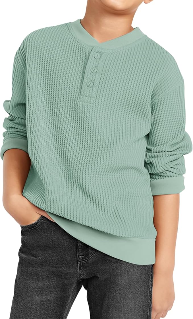 Waffle Sweatshirts for Toddler Baby Boys Girls Buttons Fashion Shirts Kids Fall Pullover Long Sleeve Tops Clothes