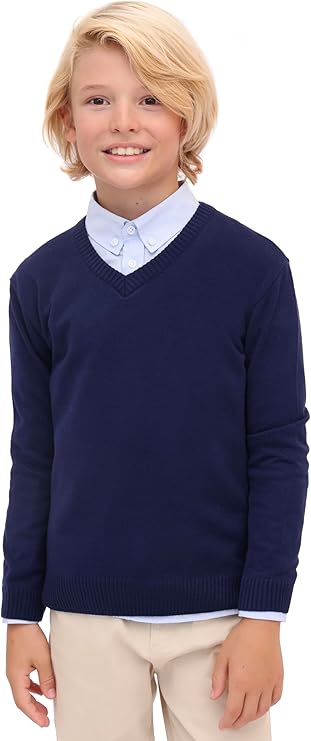 Boy's Long Sleeve V-neck Sweater, Kids School Uniform Clothes, Pullover
