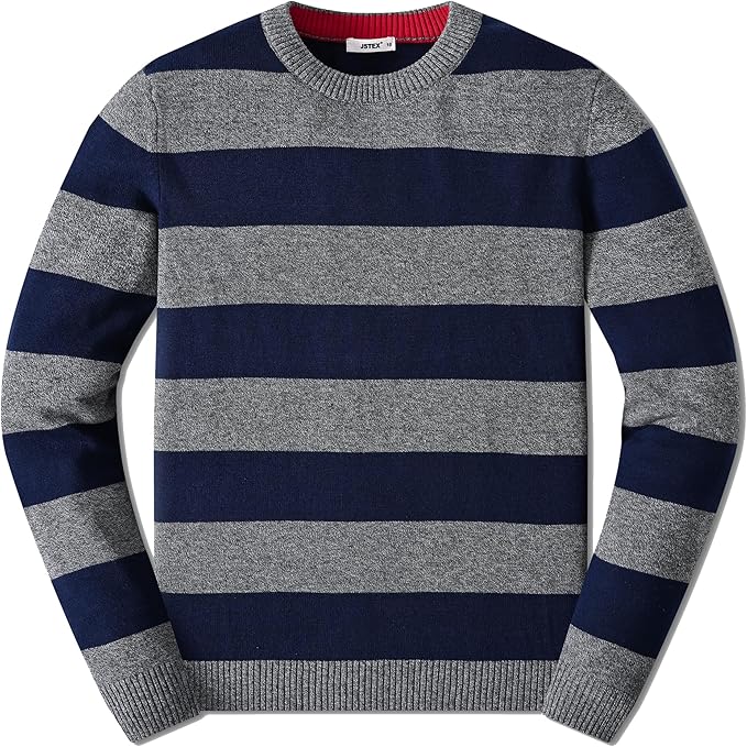 Boys Sweater 100% Cotton Knit Kids Pullover Sweater Crew Neck Long Sleeve Striped Sweater for Child Toddler Size 4-14