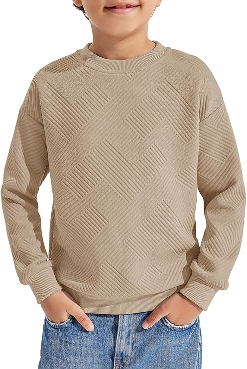 Boys Geometric Texture Sweatshirts Fashion Crewneck Long Sleeve Pullover Shirts 5-14 Years