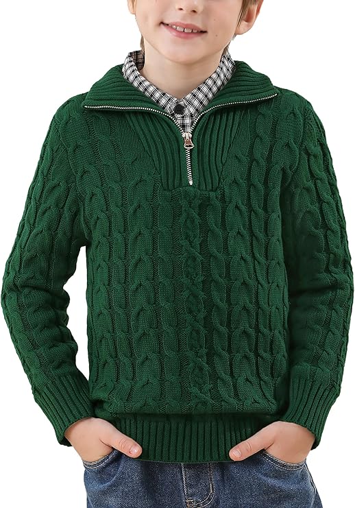 Boys Pullover Sweater - Classic Fit Mid-Weight Quarter Zip Pullover- Mock Neck Sweater for Boys (S-XL)