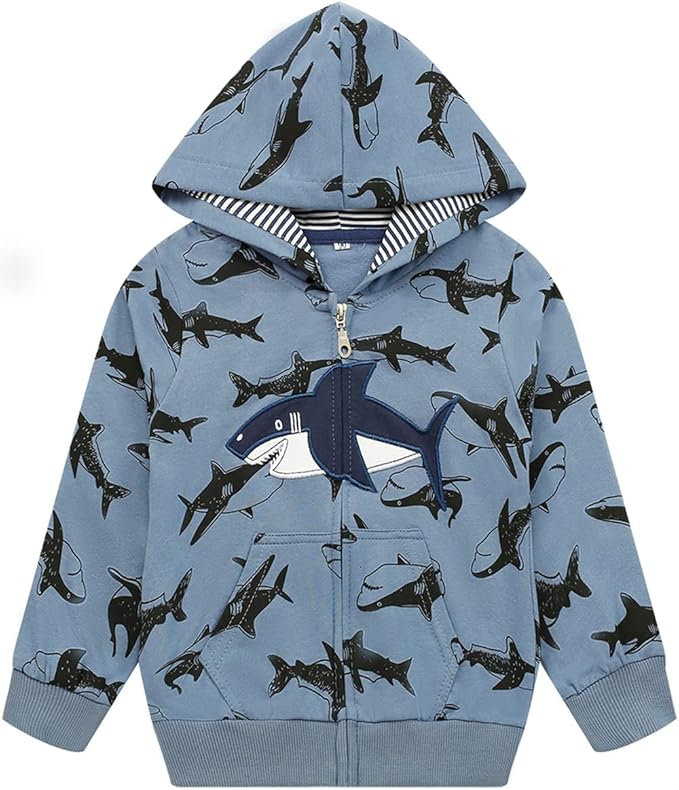Baby Boys Zip Up Hoodie Toddler Boys Jacket Cartoon Winter Long Sleeve Hooded Sweatshirt Tops Fall Coat Kids 2-7 Years