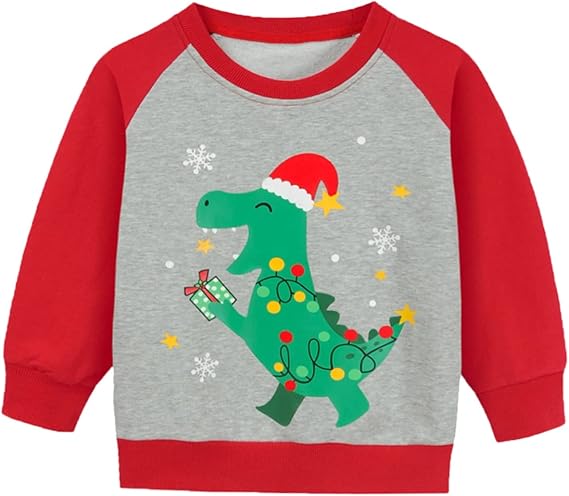 Boys Girls Christmas Sweatshirt Long Sleeve Kids Xmas Toddler Tops Santa Elk Dinosaur Pullover for 3-8T
