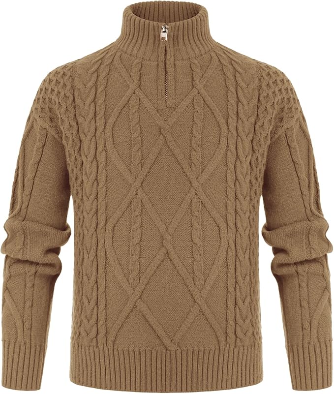 Boys Cable Knit Pullover Sweater Quarter-Zip Turtleneck for Winter
