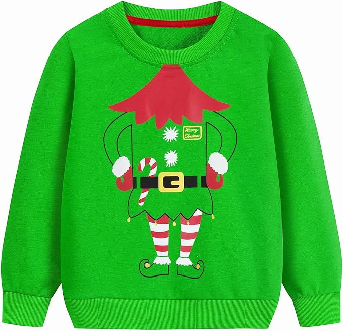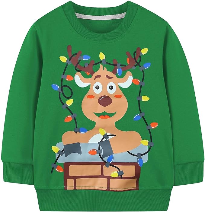 Toddler Boys Christmas Sweatshirt Kids Ugly Xmas Reindeer Santa Holiday Sweater Long Sleeve Crewneck Pullover 2-7T