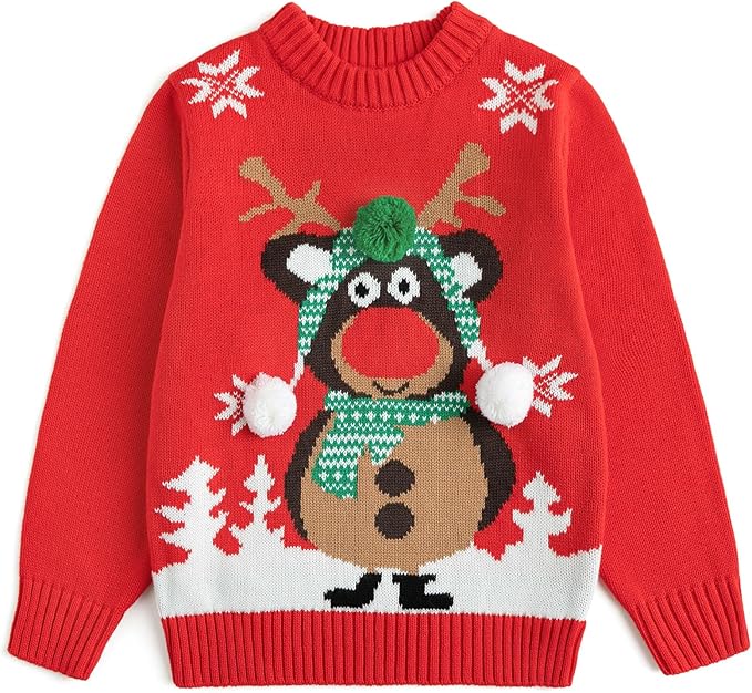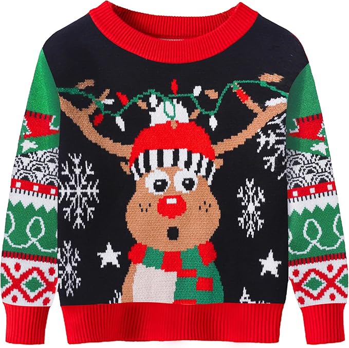 Children's Ugly Christmas Sweater Holiday Boys Toddler Knitted Sweater Winter Xmas Crewneck Pullover