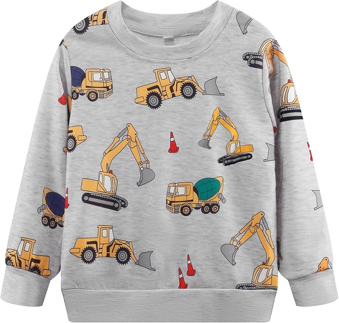 Toddler Boys Sweatshirts Cotton Crewneck Truck Shirt Dinosaur Long Sleeve Pullover Tops Tees 2-8T