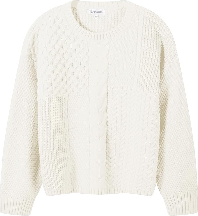 Kids Boys Cable Knit Sweaters Long Sleeve Crewneck Chunky Pullover Cute Knitwear Fall Jumper Tops 3-10 Years