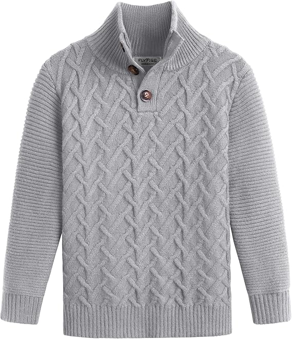 Boys Turtleneck Sweater Long Sleeve Cable Knit Button Up Pullover Winter Warm Tops for Kids 4-13 Years