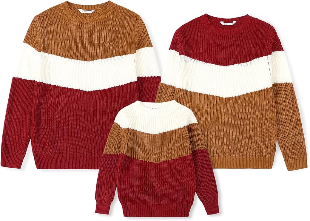Family Matching Knitted Pullover Sweaters Long Sleeve Color Block Knit Sweater Family Matching Outfits