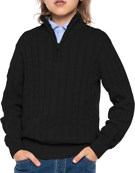 Boys Sweater Qurter Zip Pullover 100% Cotton Cable Knit Sweater Casual Long Sleeve Turtleneck for Kids 3-16 Years