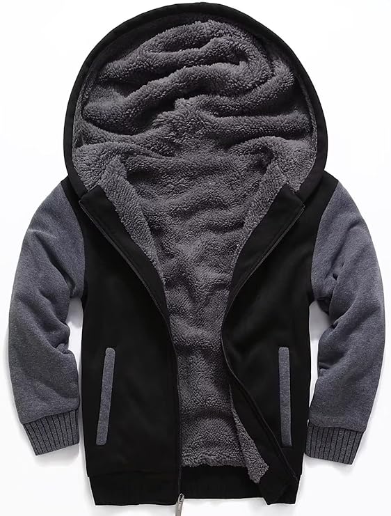 Kids Hoodie Fleece Jacket Warm Sherpa Lined Zip Up Hooded Sweatshirt Soft Winter Coat Boys Girls School Outerwear