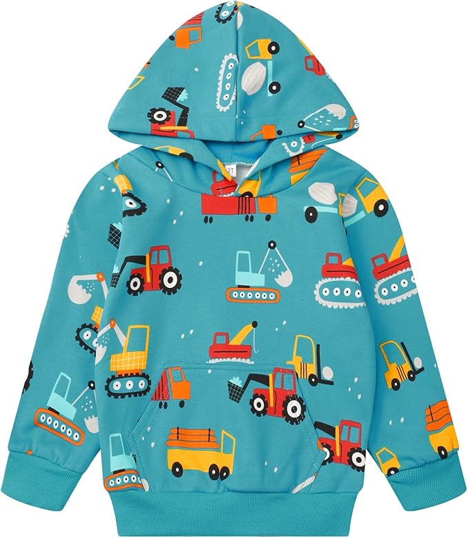Toddler Boy Hoodie Cartoon Graphic Fall Clothes Kids Cute Sweatshirts With Kangaroo Pocket 2-8T