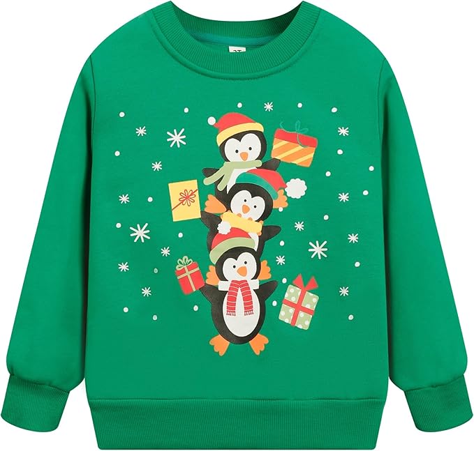 Toddler Boys Girls Christmas Sweatshirts Reindeer Crewneck Fleece Pullover Top Xmas Long Sleeve Winter Clothes 2-7T