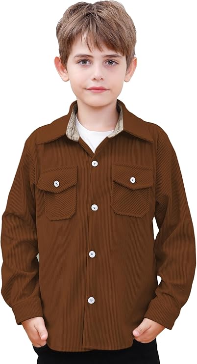 Men's & Boys Corduroy Shirt Casual Long Sleeve Button Down Shirt Jacket.