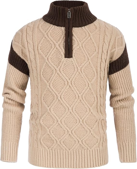 Boys Cable Knit Turtleneck Sweater 1/4 Zip-up Warm Pullover for Kids 6-12 Years