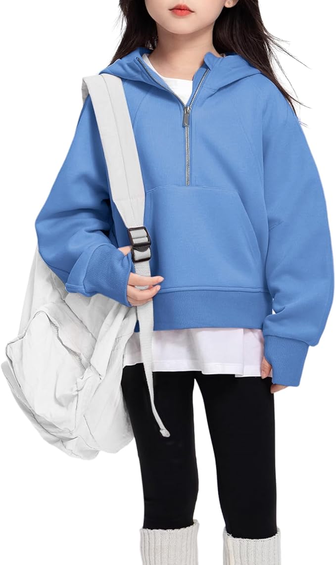Little Girls Sweatshirt Fleece Long Sleeve Zip Up Hoodies Half Zipper Sweatshirt with Pockets Fall Winter Pullover Top